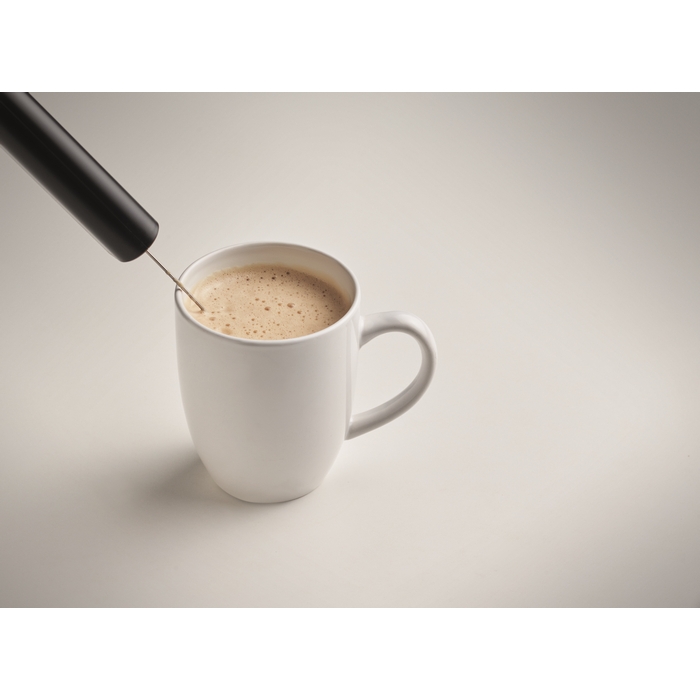 Napěňovač mléka na 2 AA baterie (nejsou součástí balení). Rozměry: 3.5 x 2.2 x 19.8 cm