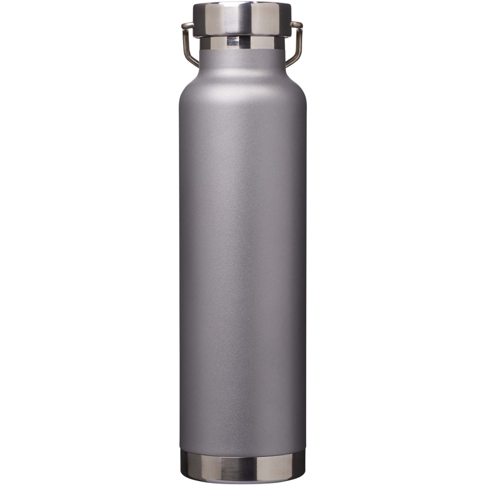 Dvoustěnná láhev z recyklované nerezové oceli a měděnou vakuovou izolací. Má šroubovací víčko z recyklované nerezové oceli s odolným poutkem z nerezové oceli. Široký otvor pro pohodlné plnění a nalévání. Objemová kapacita: 650 ml. Dodáváno v dárkové krabičce. Rozměry: 7,3 x 26,95 x 7,3 x O 7,3 cm