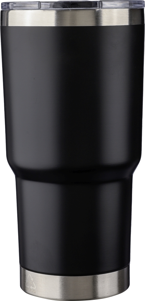 Nerezový dvouplášťový hrnek (590 ml) s PS víčkem. Recyklované logo vyryté na hrnku. Interiér je vyroben z nerezové oceli 304 a exteriér je z nerezové oceli 201. Jednotlivě baleno v hnědé kartonové krabici.Rozměry: 9 x 18 cm