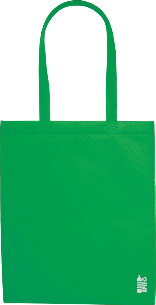Nákupní taška vyrobená z recyklovaného plastového „netkaného“ materiálu (70 g/m2) s dvěmi dlouhými uchy. Rozměry: 36 x 0,3 x 41 cm