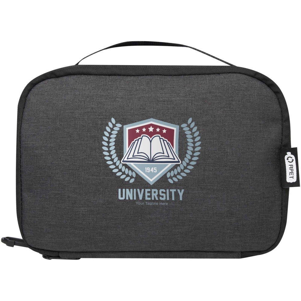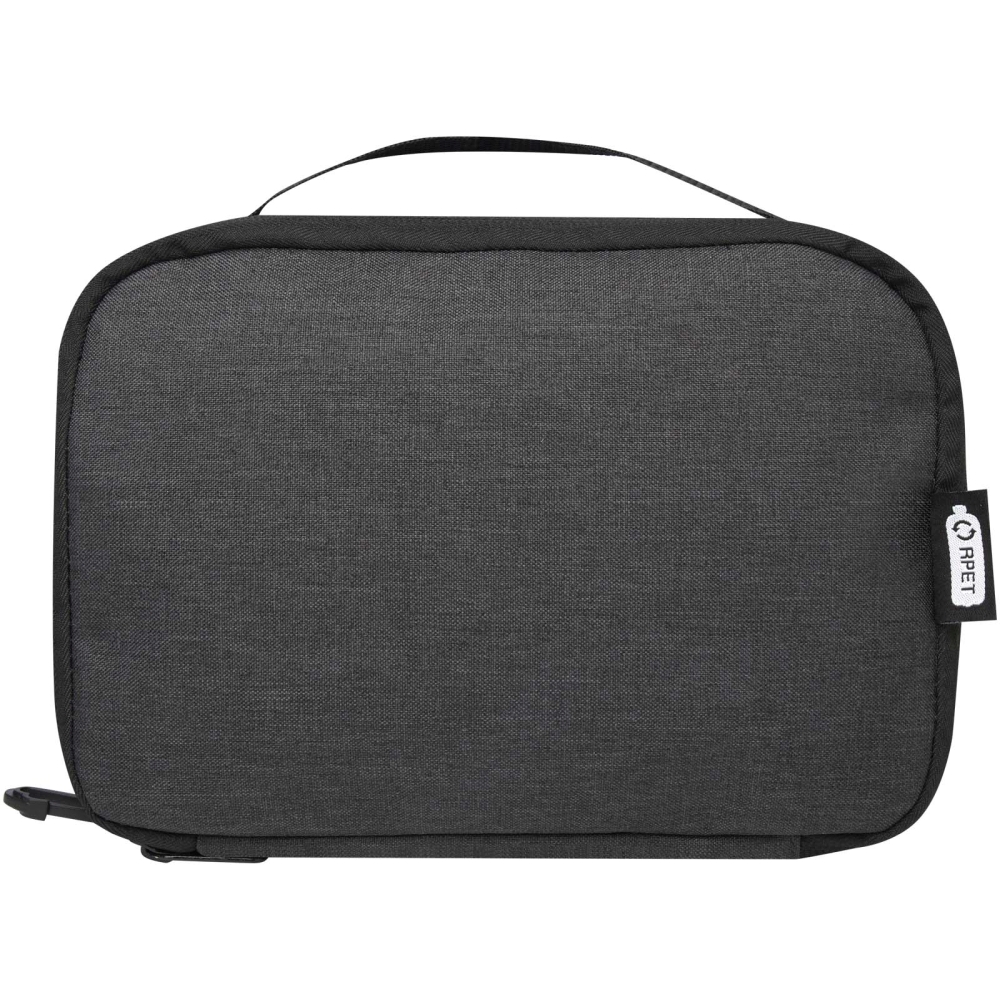 Recyklované technické pouzdro je ideální pro lidi, kteří jsou neustále na cestách, a chtějí si uspořádat powerbanky, nabíjecí kabely nebo jakémkoli jiné elektronické příslušenství. Obsahuje několik kapes, elastické smyčky a záplatu pro průchod kabelu umožňující uložení powerbanky uvnitř pouzdra při nabíjení telefonu. Má také plastovou karabinu, která poslouží k připevnění k jiné tašce. Rozměry: 21 x 4 x 14,5 cm