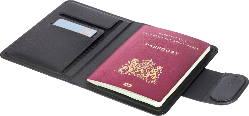 Pouzdro na pas s pevnou vazbou, magnetickým zapínáním a vestavěným trackerem kompatibilním s Apple FindMy a Android FindHub, zabudovaným v klopě. Má tři vnitřní přihrádky na dokumenty a karty. Vyrobeno z recyklovaných materiálů (PU), které pomáhají snižovat množství odpadu a zároveň poskytují odolné, flexibilní polstrování a dlouhou životnost. Jednotlivě baleno v krabičce z kraftového papíru. Rozměry: 1,5 x 10,5 cm