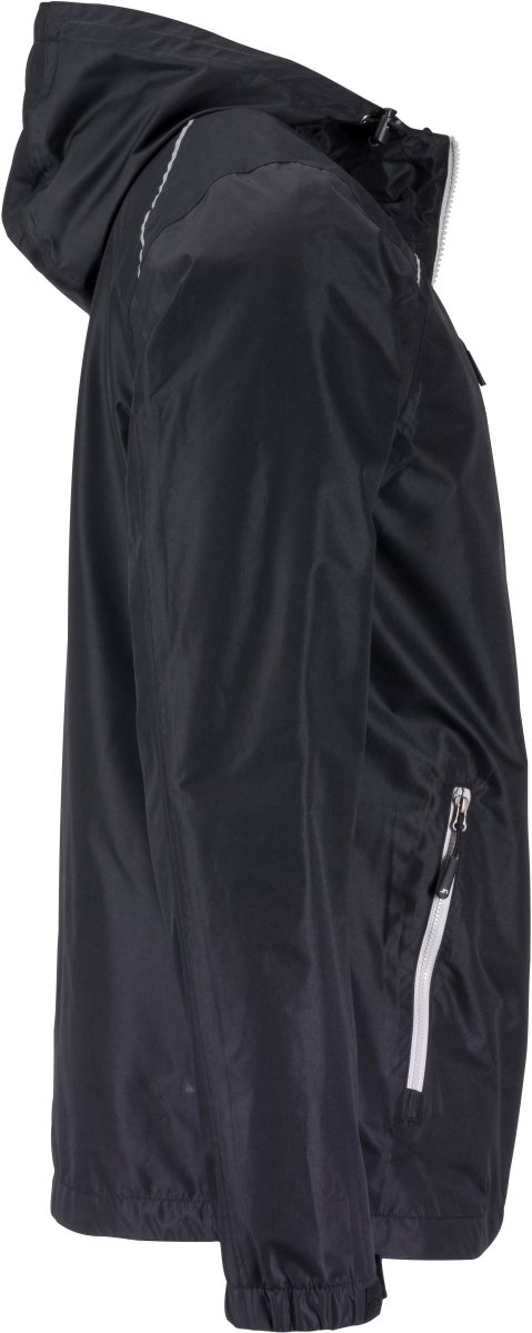 Větruodolná a voděodolná (3.000mm vodní sloupec) s TPU povlakem, prodyšná (1.500g/m2 za 24h), nastavitelná kapuce s elastickou šňůrkou, ochrana brady, 2 boční kapsy se zipem, vnitřní kapsa, podlepené švy, zipy v kontrastní barvě, přístup k zušlechtění na zádech, reflexní detaily (bez ochranné funkce) na kapuci, vpředu a vzadu . Materiál: Vnější strana: 100% polyester, uvnitř: 100% polyester