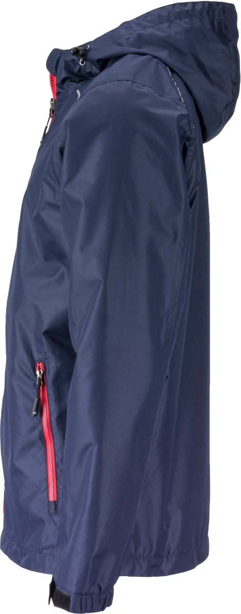 Větruodolná a voděodolná (3.000mm vodní sloupec) s TPU povlakem, prodyšná (1.500g/m2 za 24h), nastavitelná kapuce s elastickou šňůrkou, ochrana brady, 2 boční kapsy se zipem, vnitřní kapsa, podlepené švy, zipy v kontrastní barvě, přístup k zušlechtění na zádech, reflexní detaily (bez ochranné funkce) na kapuci, vpředu a vzadu . Materiál: Vnější strana: 100% polyester, uvnitř: 100% polyester
