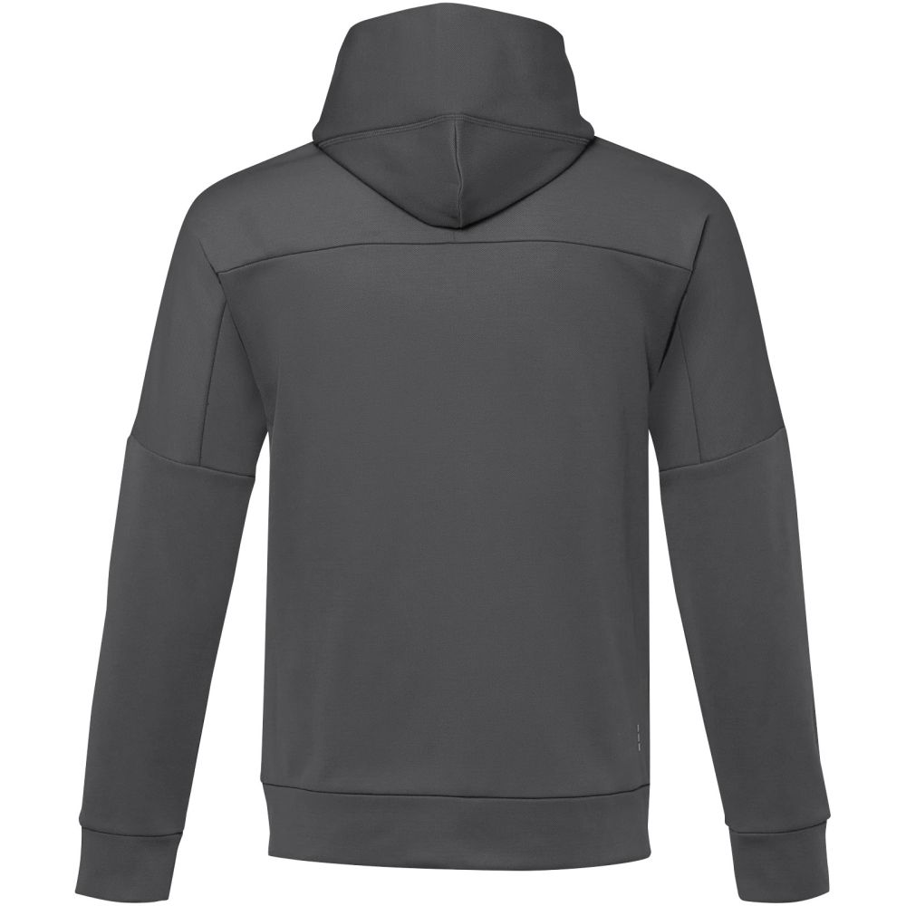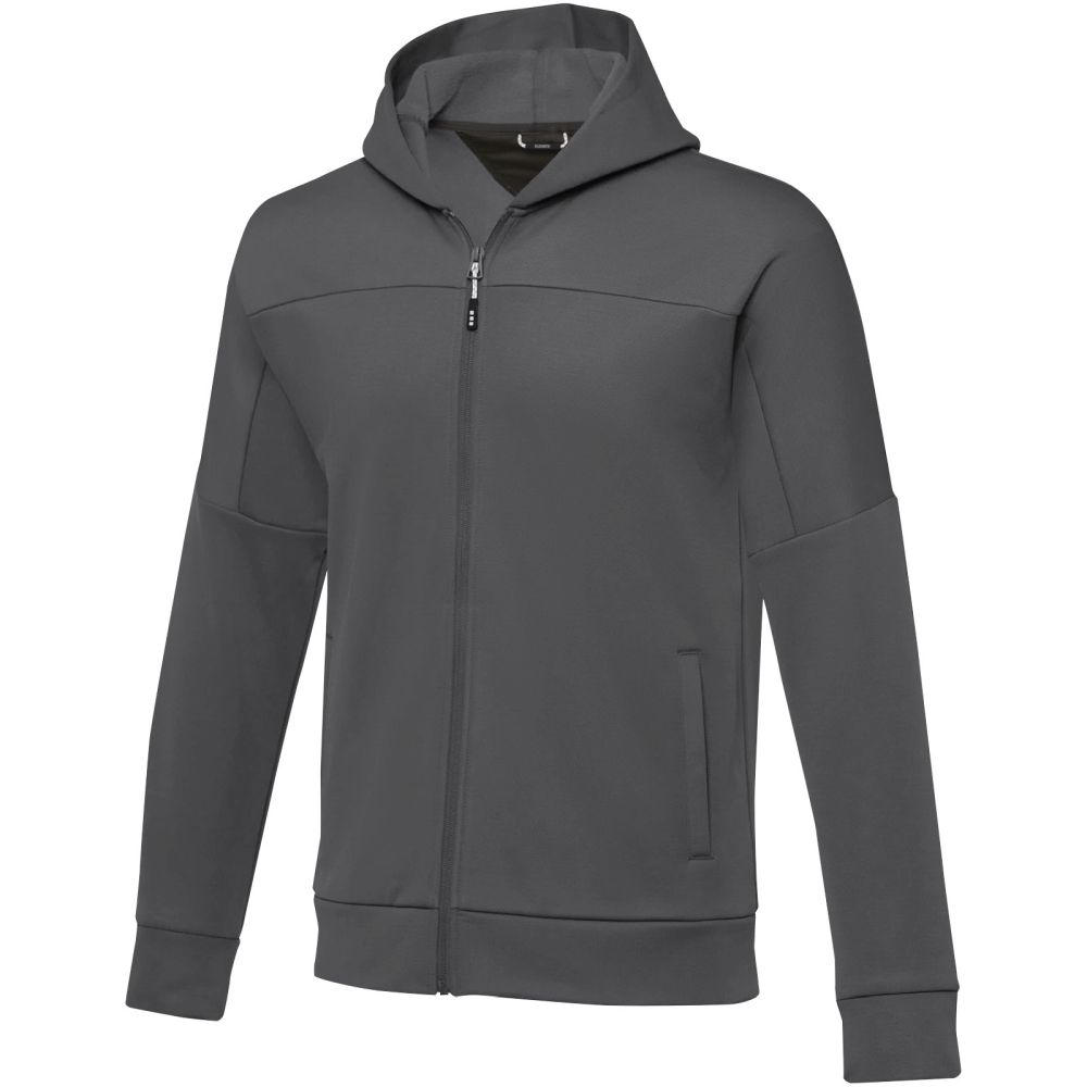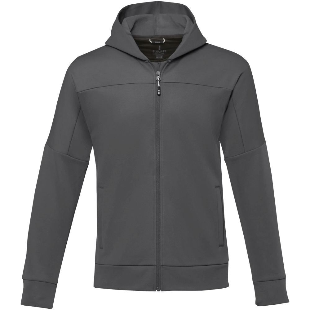 Pánská celopropínací pletená bunda s kapucí, značka Elevate. Přední kapsy. Kartáčované na vnitřní straně. Značkové závěsné poutko. Saténový nákrčník. Vnitřní port na sluchátka s průtahem na kabel. Potisk štítku technologií heat transfer pro větší pohodlí. Úplet 70% polyester, 30% Sorona®, 245 g/m2.