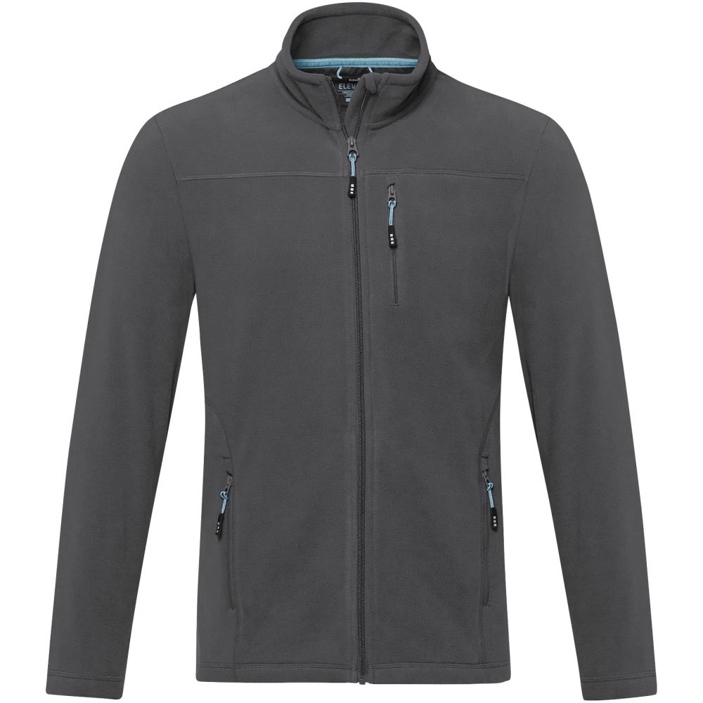 Pánská bunda z recyklovaného microfleecu, značka Elevate. Bunda je celorozepínací se stojacím límečkem, má recyklovaný středový přední zip GRS, vnitřní klopu s ochranou brady, přední kapsy se zipem, náprsní kapsu na zip, táhla zipů s příjemným povrchem, závěsné poutko. Micro fleece 100% GRS certifikovaný recyklovaný polyester, 174 g/m2.