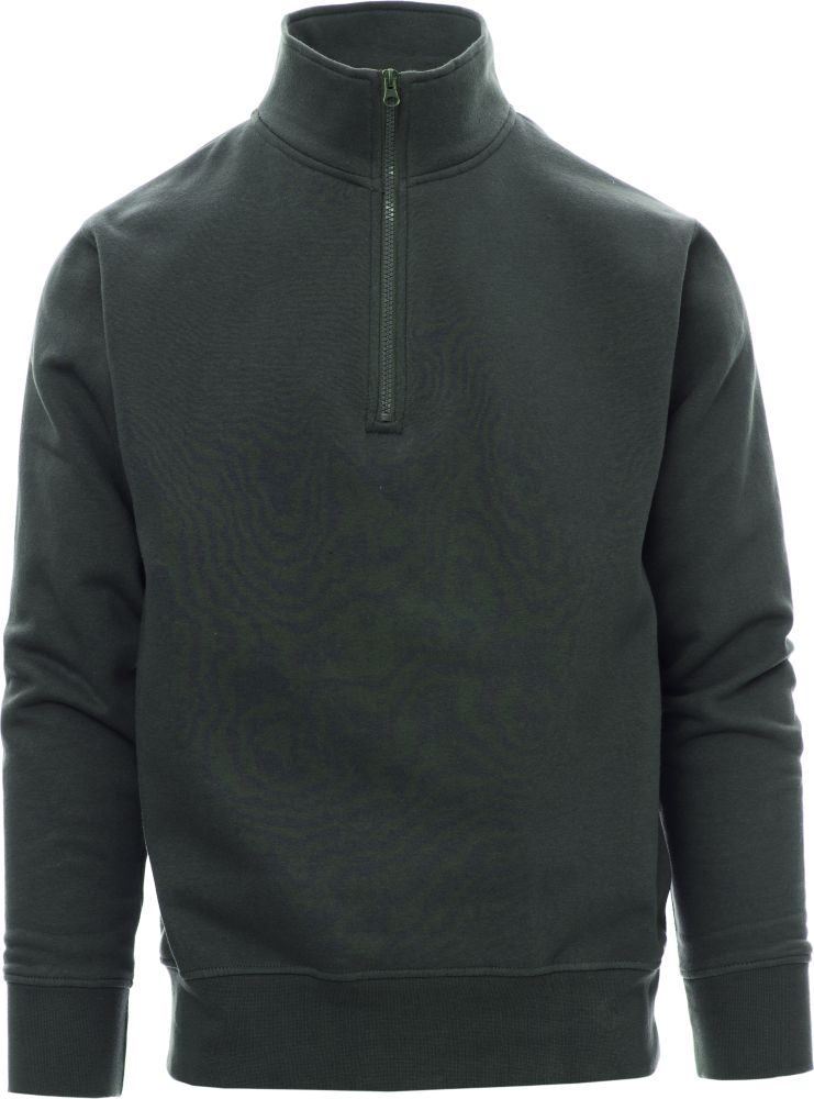 Pánská mikina s barevně sladěným plastovým polozipem s kovovým jezdcem, všívané rukávy, manžety a pas s elastickým žebrováním, zesílené švy. Materiál 70 % bavlna a 30 % polyester, 280 gsm.