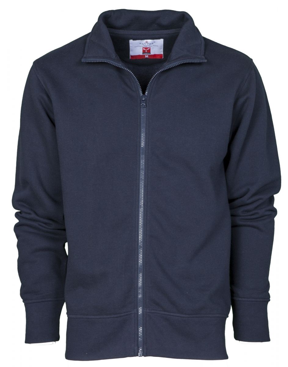 Pánská mikina s barevně sladěným plastovým celozipem s jedním kovovým jezdcem, zeštíhlené rukávy, manžety a pas s elastickým žebrováním, zesílené švy, barevně sladěný pásek na vnitřní straně límečku. Materiál: kartáčovaný vlís 70% bavlna + 30% polyester.
