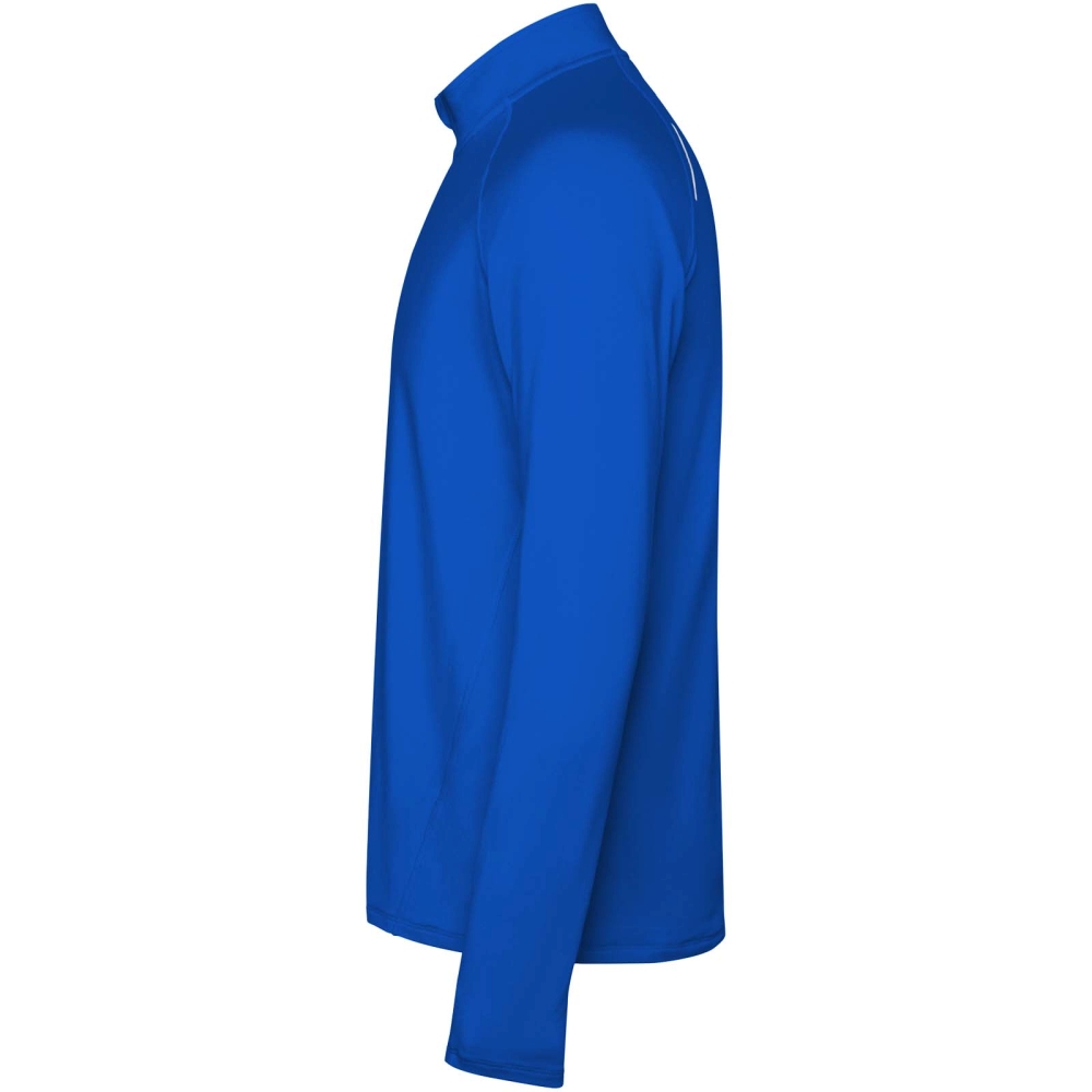 Pánská raglánová mikina s dlouhým rukávem. Límec s obráceným designem na poloviční zip s reflexními detaily. Zesílené kryty švů. Manžety s otvory na palce. Reflexní detaily na zadní straně. Zadní lem je o něco delší než přední. Teplá kartáčovaná vnitřní tkanina.