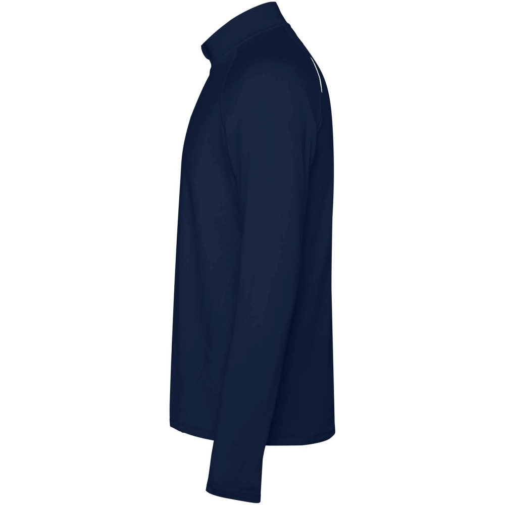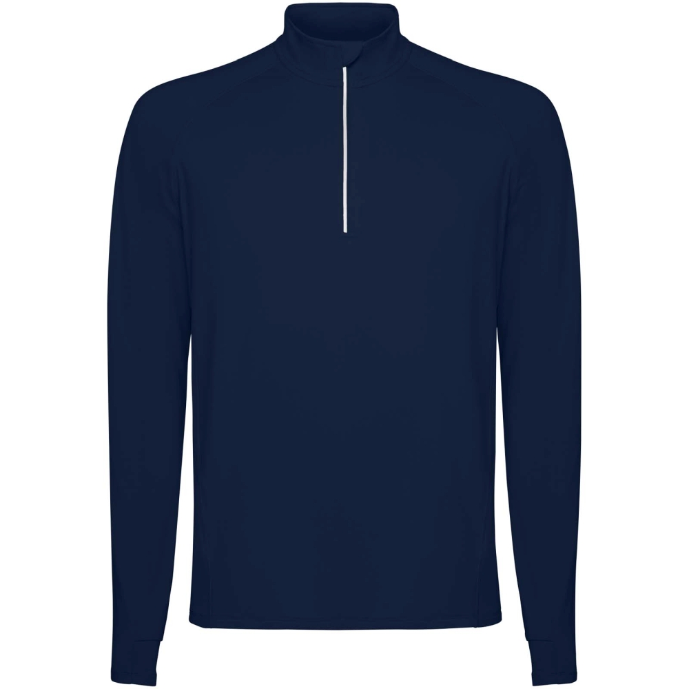 Pánská raglánová mikina s dlouhým rukávem. Límec s obráceným designem na poloviční zip s reflexními detaily. Zesílené kryty švů. Manžety s otvory na palce. Reflexní detaily na zadní straně. Zadní lem je o něco delší než přední. Teplá kartáčovaná vnitřní tkanina.