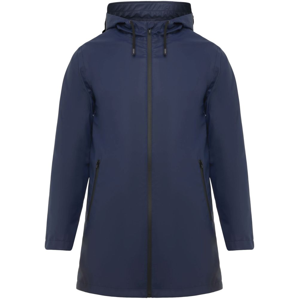 Nepromokavá pláštěnka. Kapuce s kšiltem. Zateplené zipy a švy. Kontrastní detaily v černé barvě. Dvě boční kapsy na zip. Rozparky na zadním lemu. Odnímatelný štítek. Nepromokavá. Modelka měří 185 cm a má na sobě velikost M.