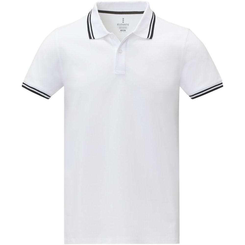 Pánská bavlněná polokošile s krátkým rukávem, značka Elevate. Polokošile je na dva gravírované knoflíčky, má plochý žebrový límeček, žebrový úplet manžetek, kontrastně barevný lem na límci a rukávech, detaily s vyšívacím stehem, saténovou lemovku výstřihu, boční rozparky se saténovou lemovkou. Piké úplet 100% bavlna, 200 g/m2.