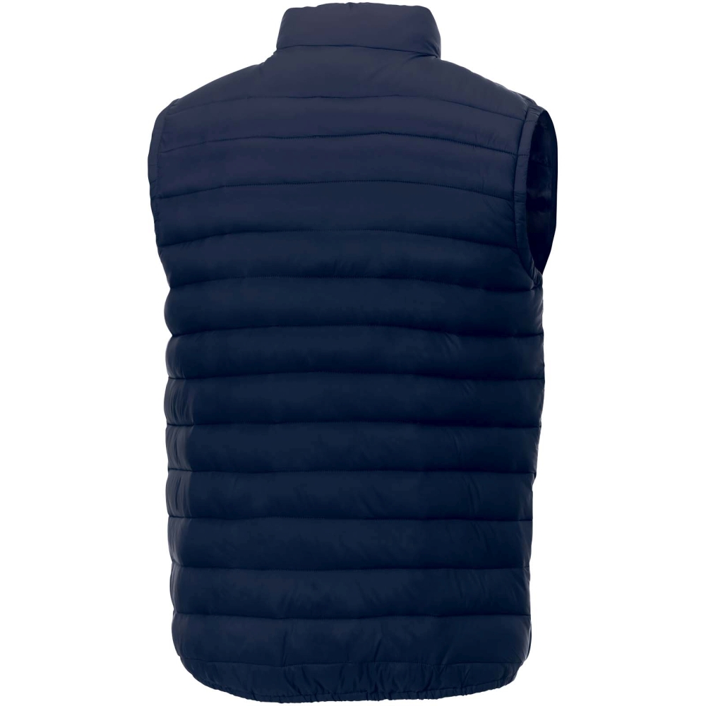Pánská vesta Pallas z recyklovaného zateplení – dokonalá kombinace stylu a funkčnosti. Zůstaňte chráněni před chladem a větrem díky vnitřní klopě s krytkou chránící bradu. Náprsní kapsa vesty se zapínáním na zip poskytuje bezpečný prostor pro vaše nezbytnosti. Elastické vázání dodává stylový nádech a zároveň zajišťuje bezpečné uchycení. Vesta je vyrobená z matné nylonové tkaniny cire 380T o gramáži 380 g/m2 a nabízí elegantní a odolný vzhled. Polstrování a výplň se skládají z izolace z umělého peří vyrobeného z polyesteru, která poskytuje lehké teplo bez kompromisů v oblasti pohodlí.