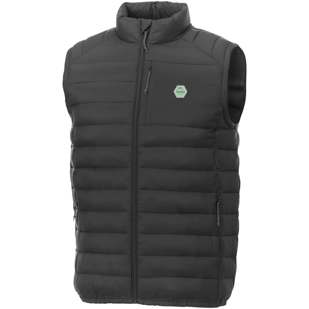 Pánská vesta Pallas z recyklovaného zateplení – dokonalá kombinace stylu a funkčnosti. Zůstaňte chráněni před chladem a větrem díky vnitřní klopě s krytkou chránící bradu. Náprsní kapsa vesty se zapínáním na zip poskytuje bezpečný prostor pro vaše nezbytnosti. Elastické vázání dodává stylový nádech a zároveň zajišťuje bezpečné uchycení. Vesta je vyrobená z matné nylonové tkaniny cire 380T o gramáži 380 g/m2 a nabízí elegantní a odolný vzhled. Polstrování a výplň se skládají z izolace z umělého peří vyrobeného z polyesteru, která poskytuje lehké teplo bez kompromisů v oblasti pohodlí.