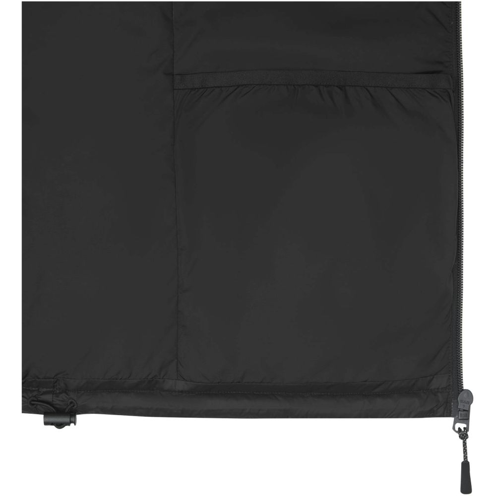 Udržitelné reklamní oblečení. GRS certifikovaný recyklovaný prostřední přední zip. Vnitřní klopa s chráničem brady. Přední kapsy s GRS certifikovaným reverzním zipem. Vnitřní kapsa. Elastická stahovací šňůrka s nastavitelným zámkem šňůrky v dolním lemu. Elastické zavazování na kapuci. Taháčky na zip s příjemným povrchem. Značkové závěsné poutko. Potisk štítku technologií heat transfer pro větší pohodlí.