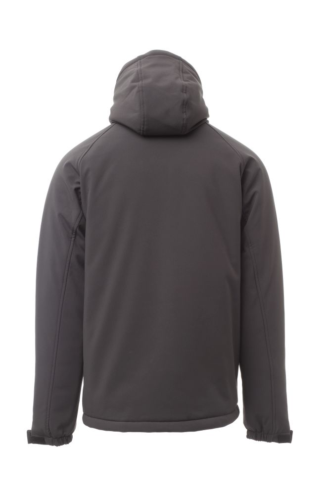 WP 8000 mm H2O, WVT 5000 g/m2 24h. Pánský zateplený softshell, zapínání na zip s kovovým jezdcem „semi-auto lock“ a přizpůsobeným taháčkem. Neodnímatelná kapuce se stahovací šňůrkou. Elastické stahovací manžety na suchý zip. Dvě boční kapsy a jedna kapsa na hrudi na zip. Fluorescenční taháčky. Dvě vnitřní kapsy: jedna tvarovaná na zip a jedna na tablet se zapínáním na suchý zip. Spodní část stažitelná pomocí přizpůsobených zarážek.