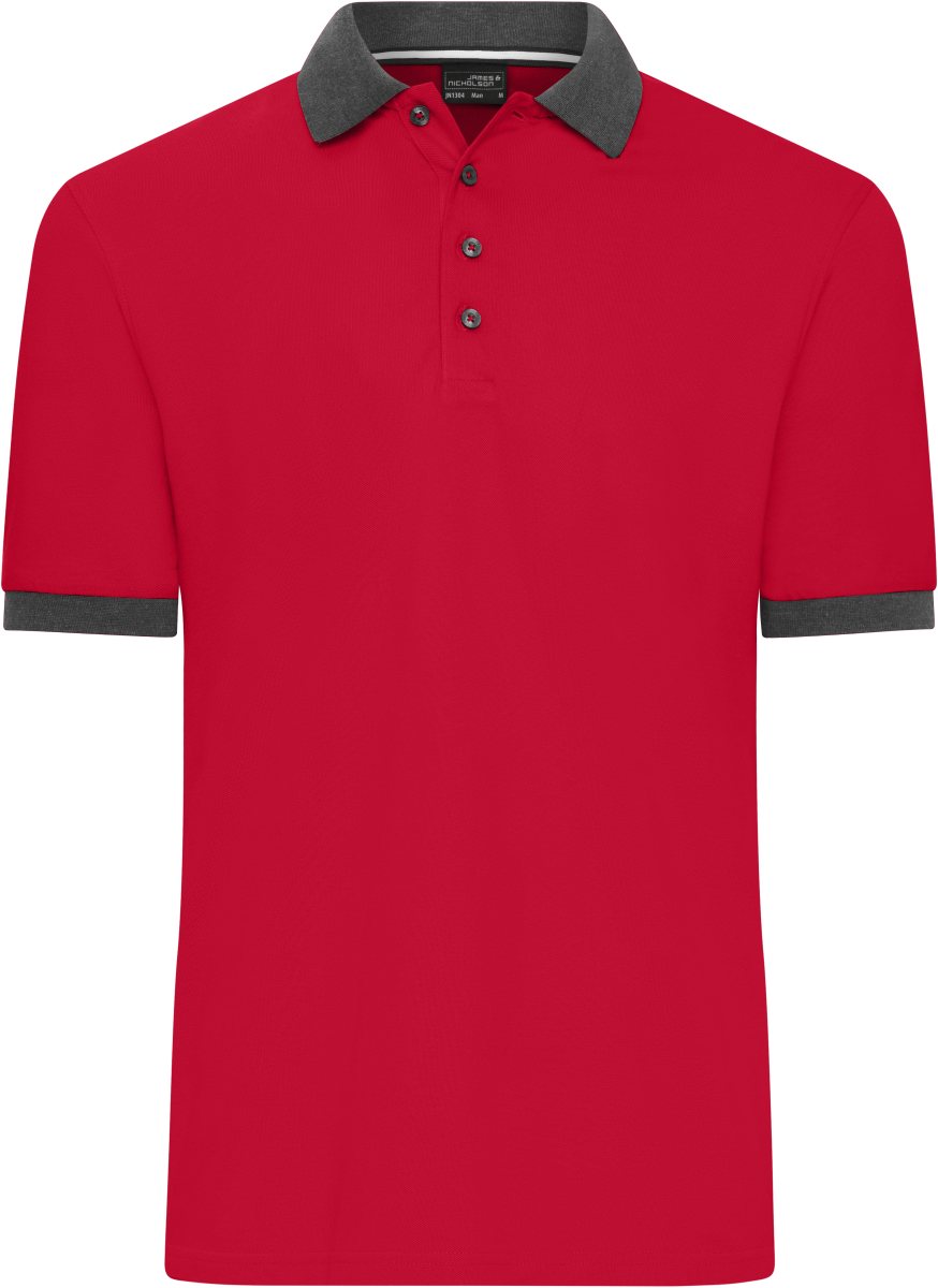 Knoflíková léga s 4 knoflíky, krční lemovka v kontrastní barvě, pletený polo límec a manžety v černé barvě, boční rozparky. Materiál:195g/m2, 100% česaná prstencová bavlna.