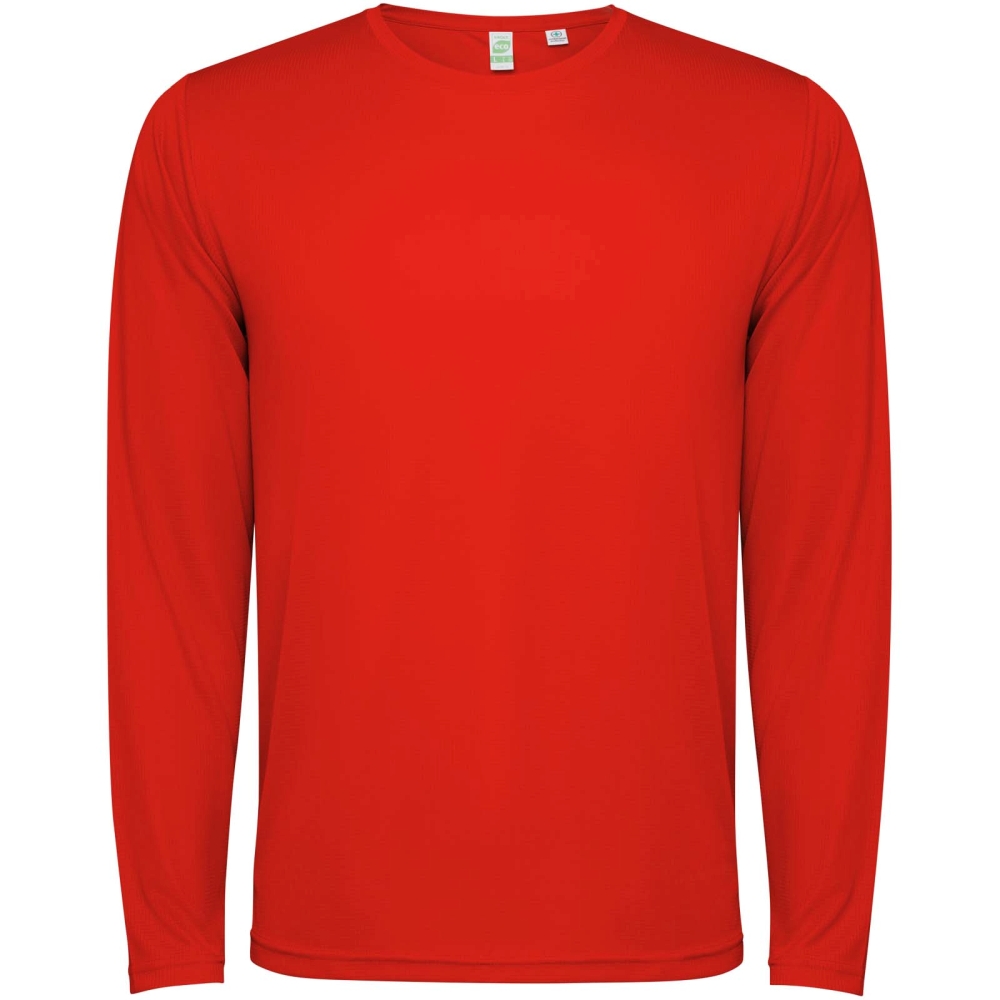 Unisex tričko s dlouhým rukávem. Límec s ladícími švy. Zadní lem je o něco delší než přední. Boční švy posunuté dopředu.