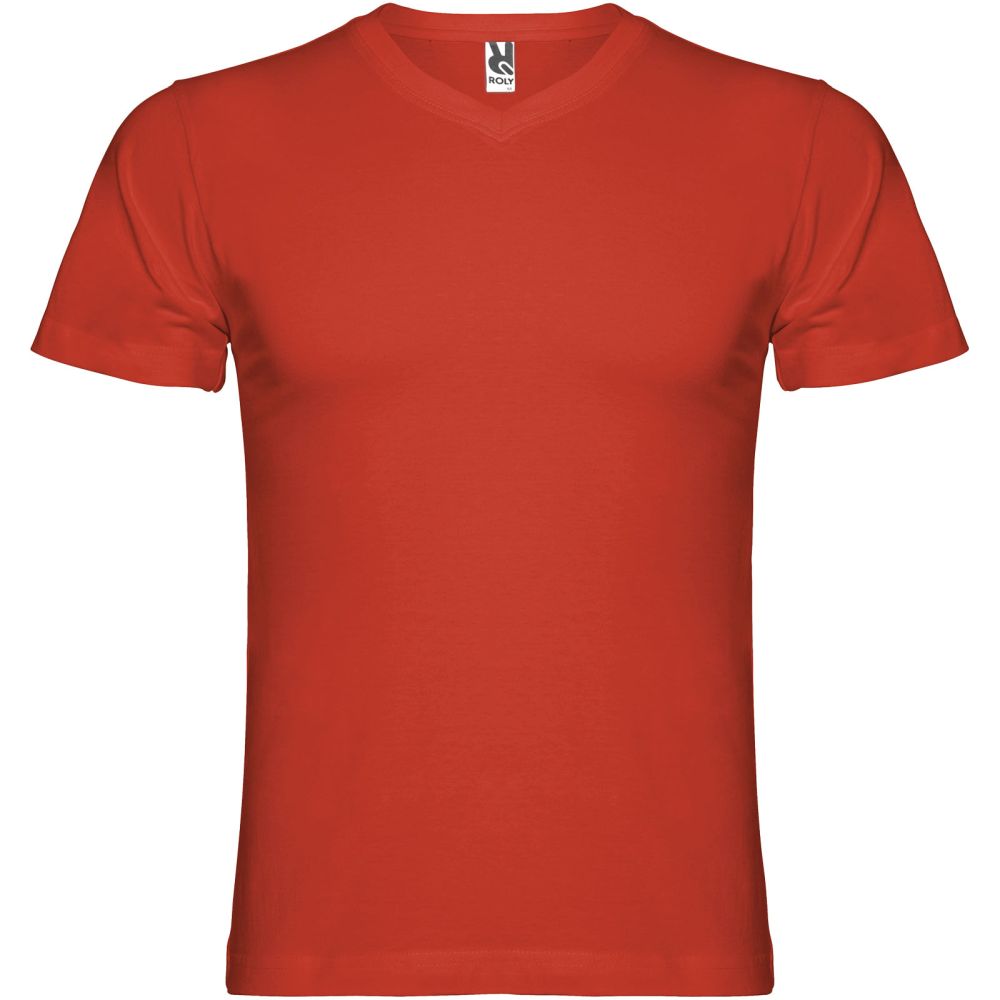 Tričko s krátkým rukávem, tubulárním střihem (bez postranních švů) a dvouvrstvým výstřihem do V. Zesílené kryté švy v límci a na ramenou. Odnímatelný štítek. Materiál: 100% bavlna