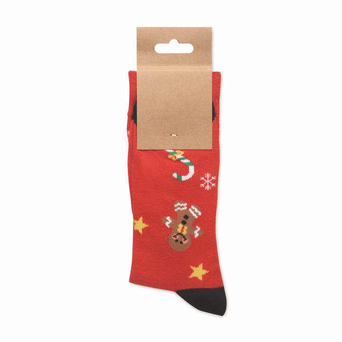 Pár vánočních ponožek ze 75 % bavlny, 23 % polyesteru RPET a 2 % elastanu. Velikost M = 38-42.Rozměry: 24,5 x 9,5cm