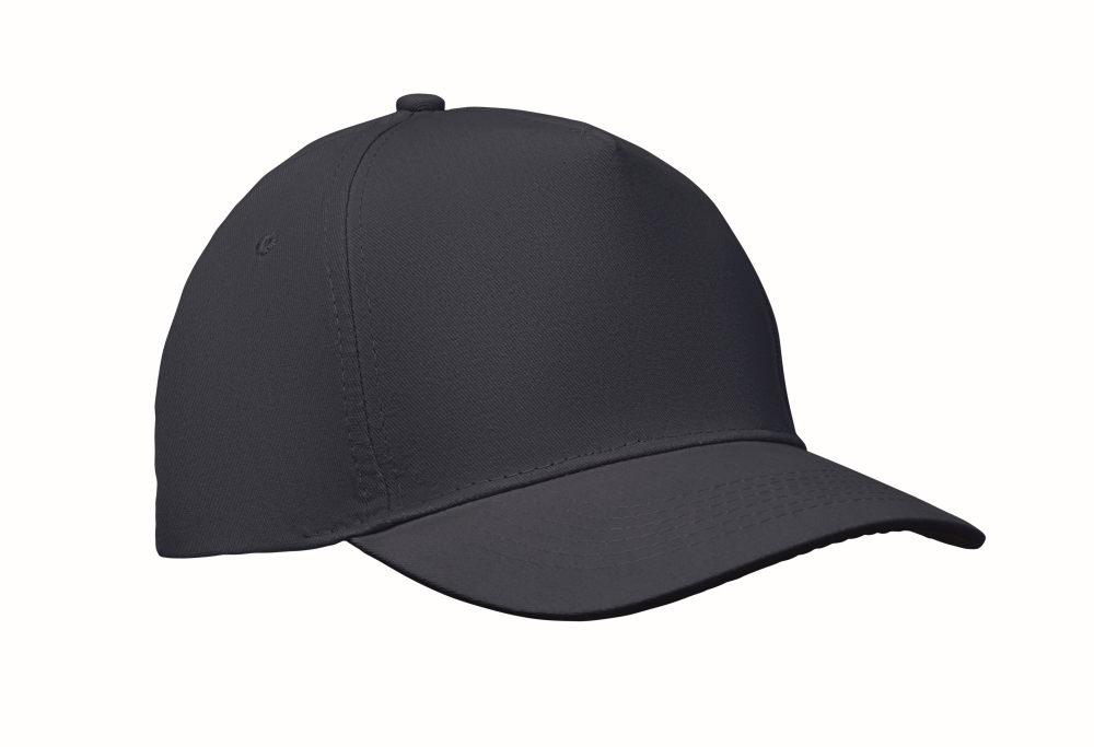Pětipanelová baseballová čepice z bavlněného kepru 180 gr/m2 s nastavitelným zapínáním na suchý zip a 2 vyšívanými očky ve stejné barvě. Velikost 7 1/4. Rozměry: 20 x 17 x 11 cm