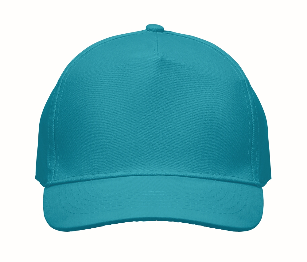Pětipanelová baseballová čepice z bavlněného kepru 180 gr/m2 s nastavitelným zapínáním na suchý zip a 2 vyšívanými očky ve stejné barvě. Velikost 7 1/4. Rozměry: 20 x 17 x 11 cm