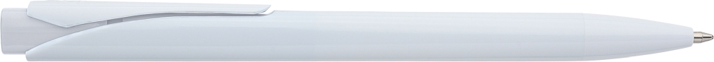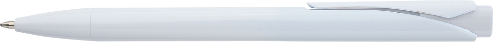 Propiska s plným bílým tělem a barevným detailem tlačítka. Vyrobena z recyklovaného ABS plastu, což snižuje množství plastového odpadu a zároveň zachovává vysokou odolnost proti nárazu a dlouhou životnost. Má klikací mechanismus, klip a zalité logo z recyklovaného ABS plastu na horní straně tlačítka. Vybaveno modrým německým inkoustem Dokumental. Rozměry: 1,2 x 14 cm