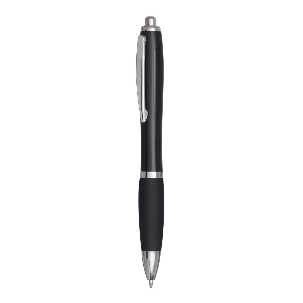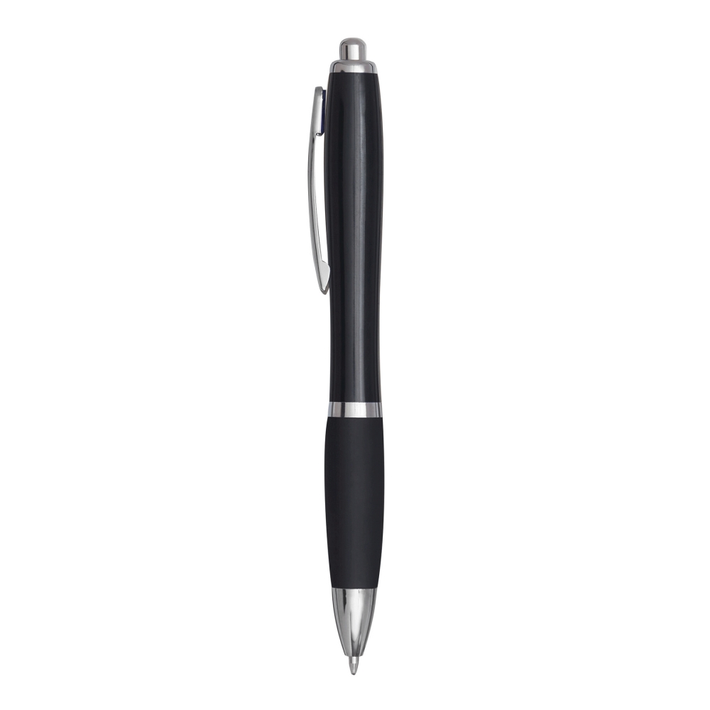 Propiska se zaobleným tělem z recyklovaného plastu, pogumovaná rukojeť, klikací mechanismus, velká náplň, modrý inkoust. Rozměry: 14 cm