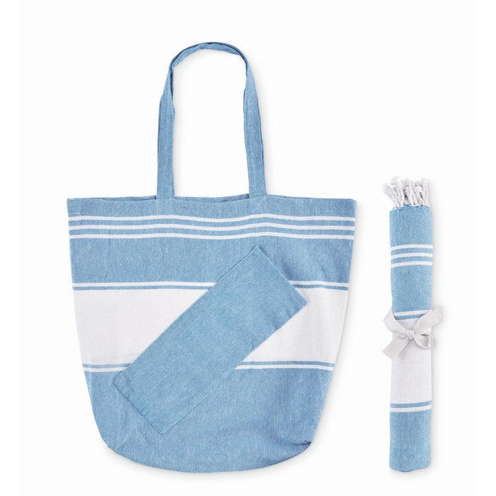 Sada plážové osušky a plážové tašky hammam. 70 % bavlna a 30 % polyester. 180 g/m2. Rozměry: 50 x 14 x 38 cm