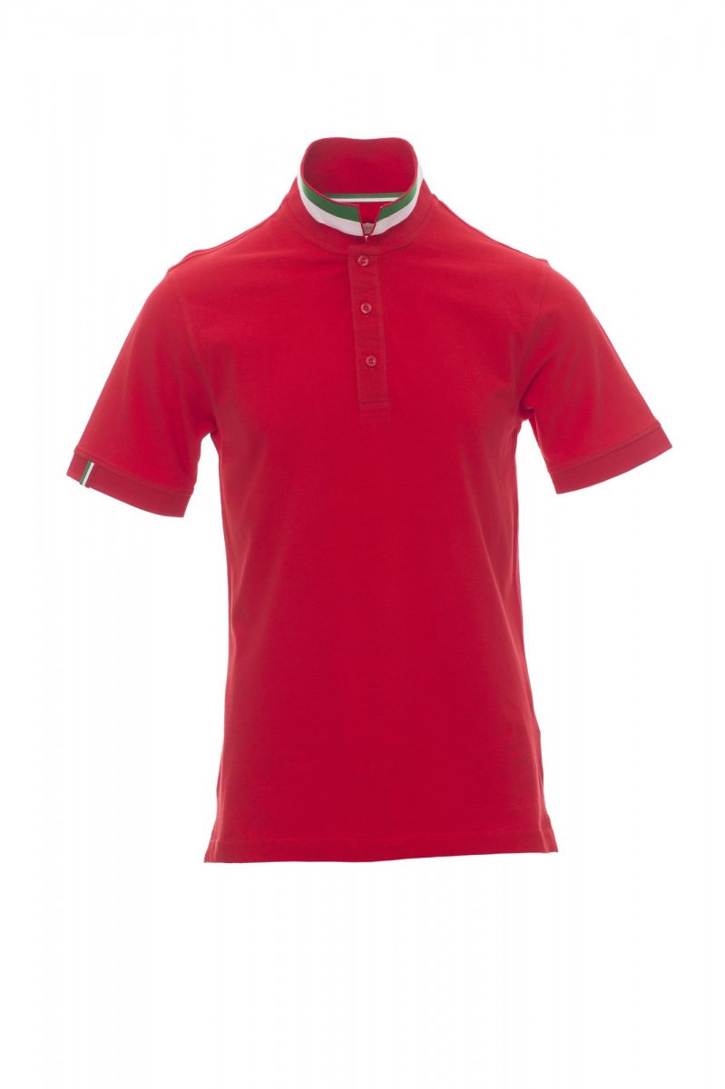 Pánská polokošile s krátkým rukávem s 3 barevně sladěnými perleťovými knoflíky, barevně sladěný límeček s kontrastním rubem v barvách italské vlajky, který je vidět pouze při zvednutí, barevně lemovaný pravý rukáv ve stejné barvě jako límeček, žebrovaný límeček a lemy rukávů, postranní rozparky v barvách italské vlajky, skryté prošití límečku s žerzejovým úpletem rovněž v barvách vlajky, postranní vyztužovací páska, tvarovaná výztuž na spodní straně límečku.