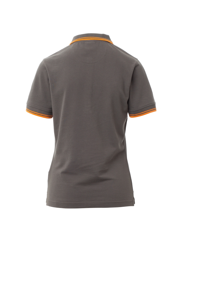 Dámská polokošile s krátkým rukávem a kontrastním lemem na rukávech a límci, 2 bílé knoflíky, vypasovaný střih, boční rozparky, 100% česaná bavlna, 210 g/m2.