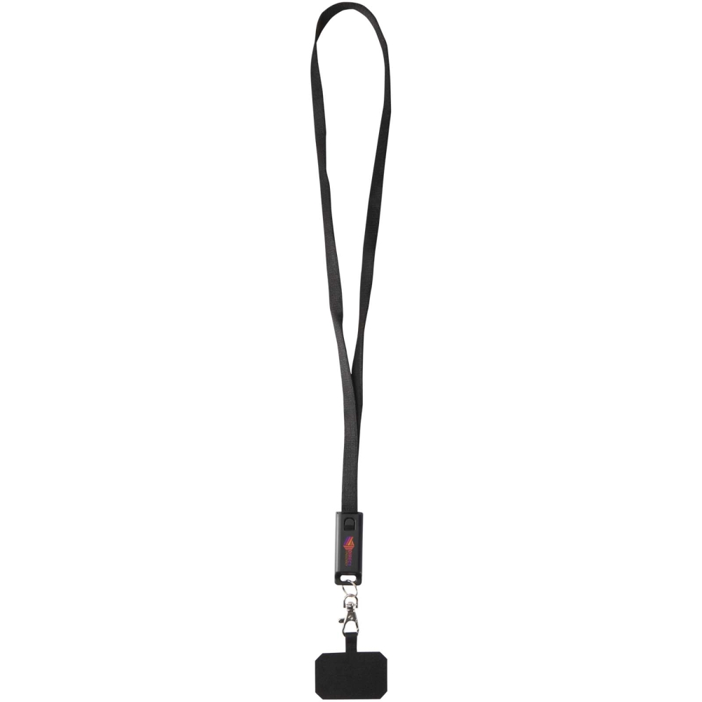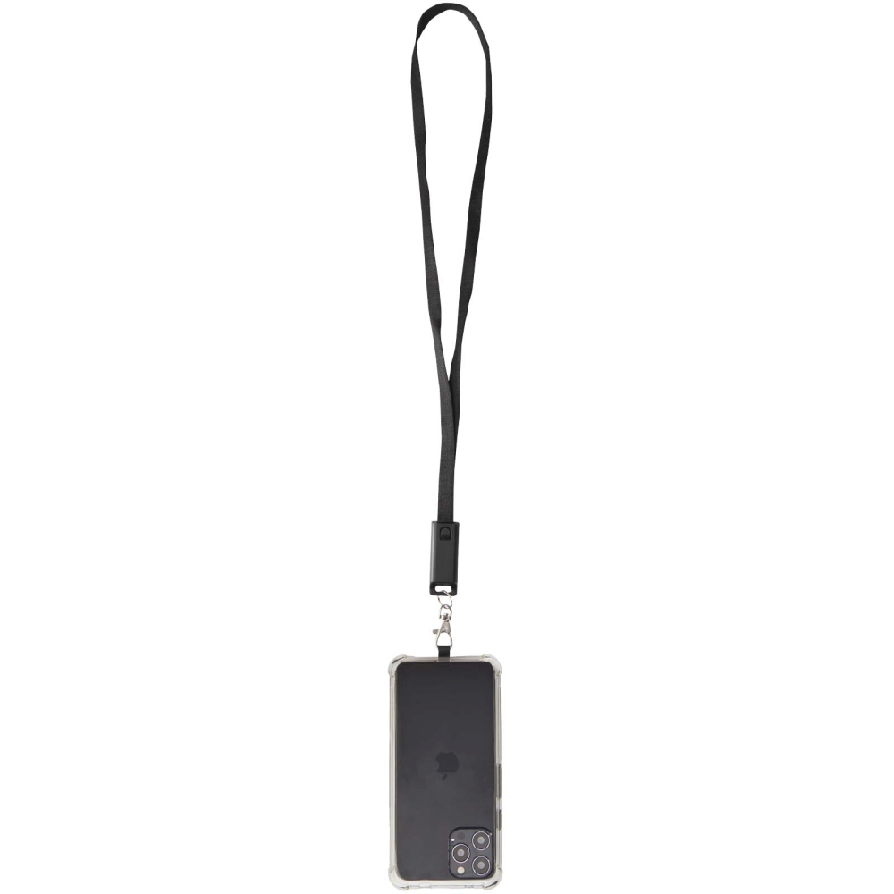 Šňůrka na chytrý telefon vyrobená z recyklovaného plastu je praktický doplněk s vestavěným 65W nabíjecím kabelem 5 v 1, který nabízí vstupy typu C a USB-A a výstupy typu C, Lightning a microUSB. Tento kabel je dostatečně výkonný pro rychlé nabití většiny notebooků, tabletů a chytrých telefonů. Je kompatibilní se standardy CarPlay i Android Auto, takže je ideální pro cestování, práci nebo každodenní použití. Rozměry: 61,5 x 1,5 cm