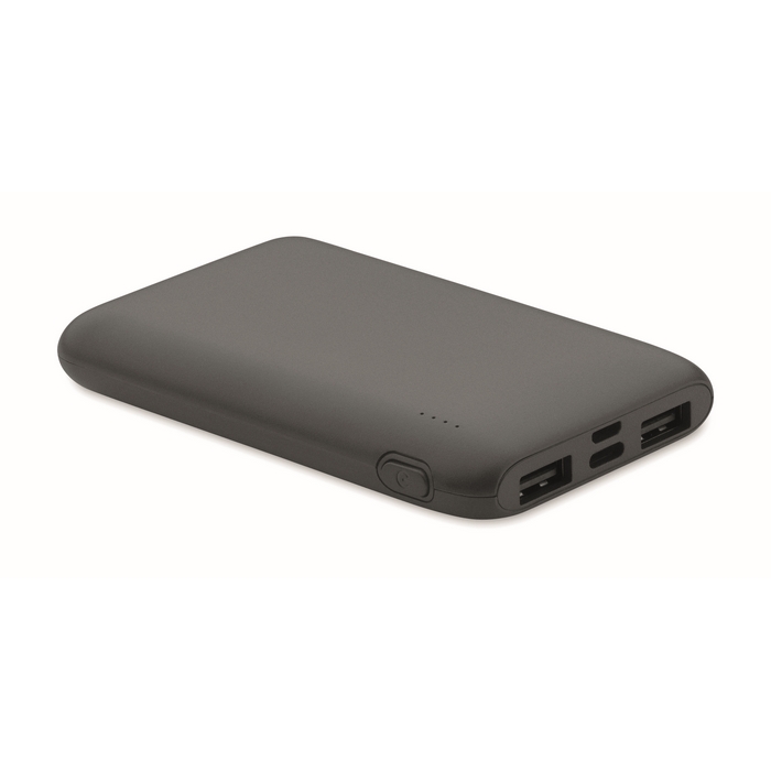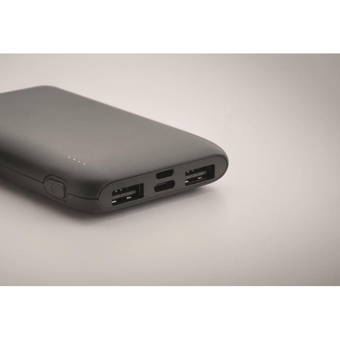 Powerbanka 5000 mAh z recyklovaného ABS. Výstupní proud DC5V/2A. 2x USB type A a 1x type C in/out a 1x type micro-B in. Rozměry: 9,9 x 6,2 x 1,5 cm