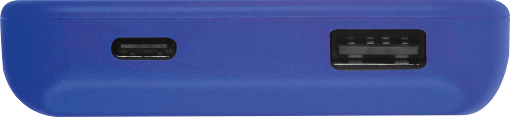 Powerbanka (10 000 mAh) z recyklovaného plastu se dvěmi porty: USB-C in/out 5V/2,1A a USB-A out 5V/2,1A. Obsahuje 50 cm nabíjecí kabel. Rozměry: 13,5 x 6,5 x 1,5 cm