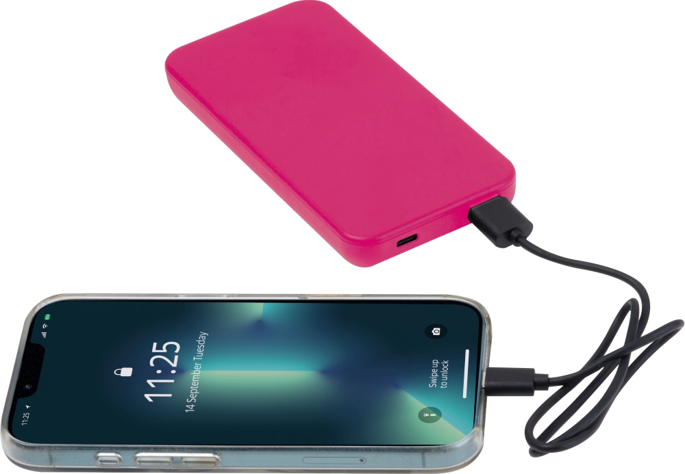 Powerbanka z recyklovaného plastu 10000 mAh, růžová