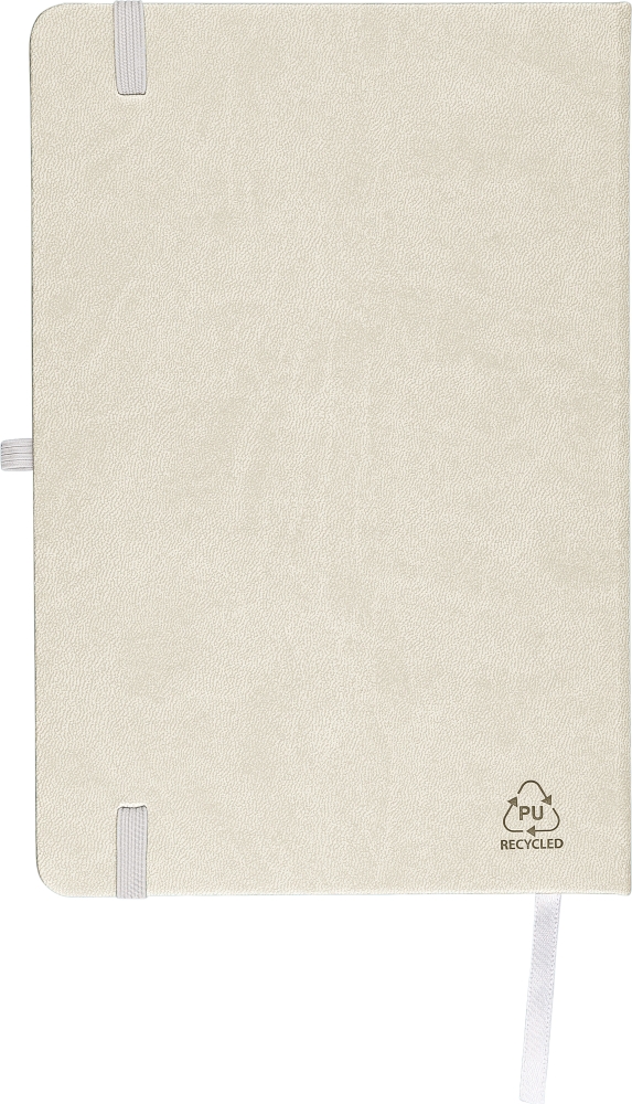 Poznámkový blok A5 s recyklovaným tvrdým obalem a reliéfním recyklovaným logem na zadní straně. Vyrobeno z odolných, flexibilních materiálů (PU), které poskytují pohodlí, odpružení a dlouhou životnost. Obálka je vhodná pro laserové gravírování, což odhaluje jemný barevný efekt tón v tónu. Obsahuje 80 linkovaných stránek z 70 g/m2 papíru s gumičkou v barvě odpovídající barvy, fixem a poutkem na pero. Papír v tomto poznámkovém bloku má certifikaci FSC® Mix. Rozměry: 21 cm