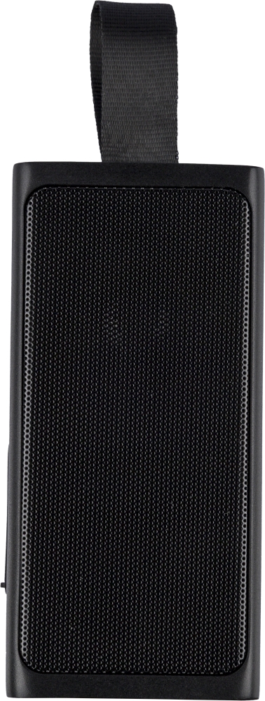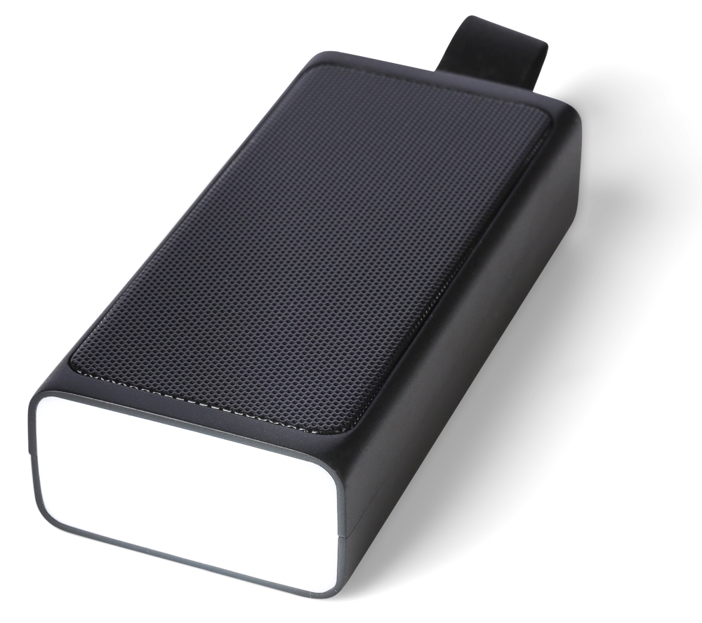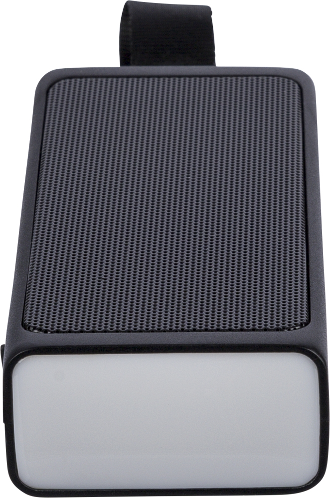 Reproduktor z recyklovaného ABS plastu s výkonem 5 W, COB LED svítilnou, silikonovým poutkem a bezdrátovou technologií 5.4. Baterie 500 mAh, vstup 5 V/500 mA. Venkovní design s recyklovaným logem. Baleno v hnědé krabičce. Rozměry: 2,8 cm x 11,3 cm