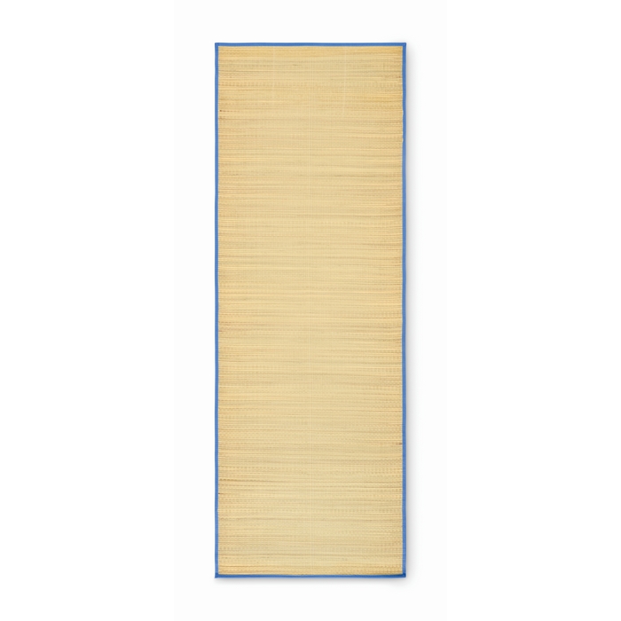 Plážová rohož z přírodní slámy s polyesterovým popruhem na nošení. Rozměry: 180 x 60 cm