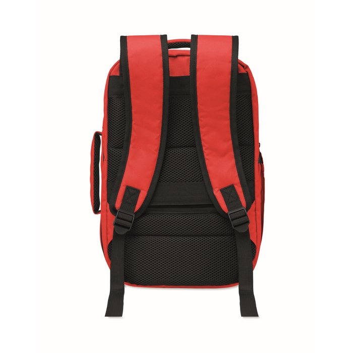 Kabinový batoh vyrobený z polyesteru 600D RPET s otevíráním pod úhlem 180o. Hlavní přihrádka se dvěma otevřenými oddíly, polstrovaná kapsa na 15 notebook a popruh na zavazadlo. Rozměry: 25 x 20 x 40 cm
