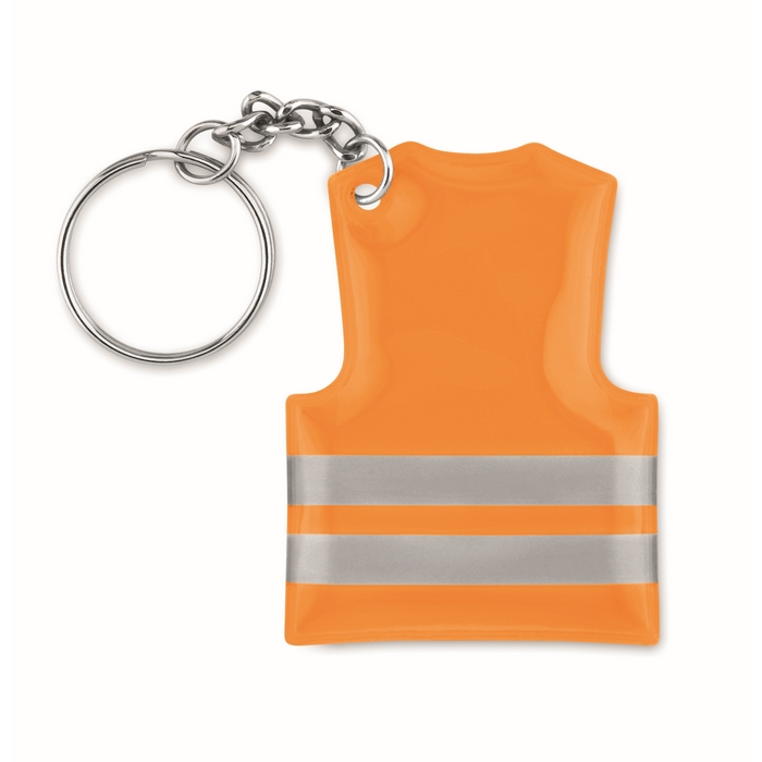 Reflexní PVC vesta s klíčenkou. Rozměry: 4,3 x 0,2 x 6 cm