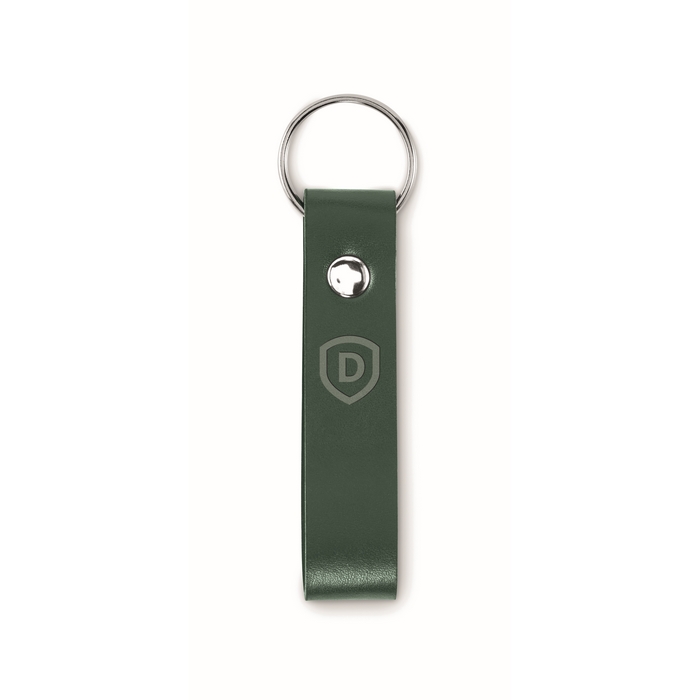 Přívěsek na klíče s PU smyčkou. Rozměry: 10 x 2 cm
