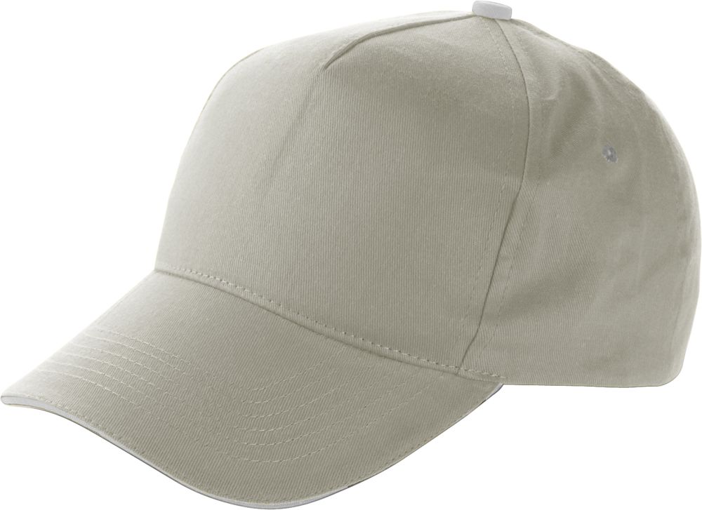 Pětipanelová bavlněná čepice se sendvičovým kšiltem a zapínáním na suchý zip. Materiál 100% bavlna. Rozměry: O 19 × 13 cm.