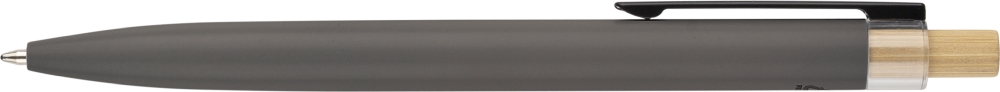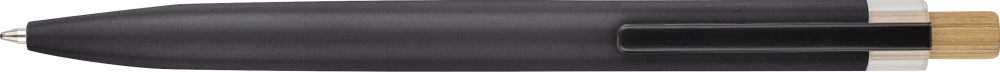 Propiska z recyklovaného hliníku s lakovaným tlačítkem, lemováním z rPET a kovovým klipem. S gravírovaným logem z recyklovaného materiálu. Přibližná délka psaní 700 metrů. Modrý inkoust. Rozměry: 1 cm x 14 cm x 1,34 cm.