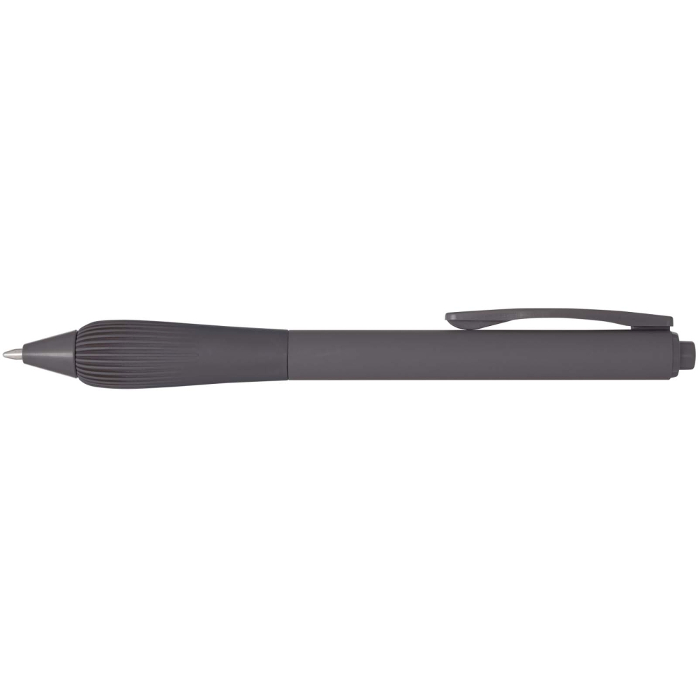 Propiska z recyklovaného plastu s pogumovaným tělem a rukojetí z TPR. Barva inkoustu: Černá. Délka psaní: 1000 metrů. Rozměr hrotu: 1,0 mm. Rozměry: 14,3 x O 1,02 cm