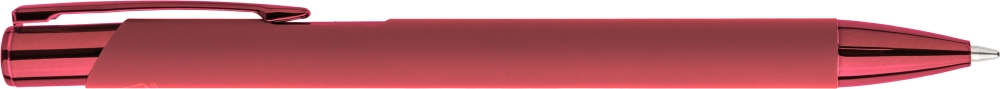 Propiska z recyklovaného hliníku s pogumovaným povrchem a sladěnými plastovými a kovovými detaily s UV vrstvou. Po gravírování se objeví lesklý zrcadlový efekt. S gravírovaným logem z recyklovaného materiálu. Modrý inkoust. Rozměry: 1 cm x 1,3 cm x 13,8 cm.