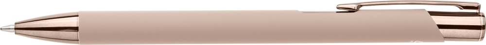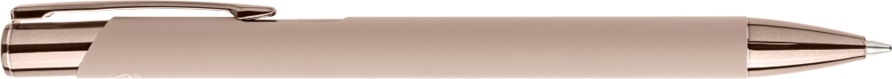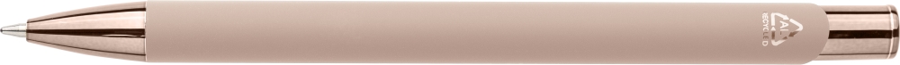 Propiska z recyklovaného hliníku s pogumovaným povrchem a sladěnými plastovými a kovovými detaily s UV vrstvou. Po gravírování se objeví lesklý zrcadlový efekt. S gravírovaným logem z recyklovaného materiálu. Modrý inkoust. Rozměry: 1 cm x 1,3 cm x 13,8 cm.