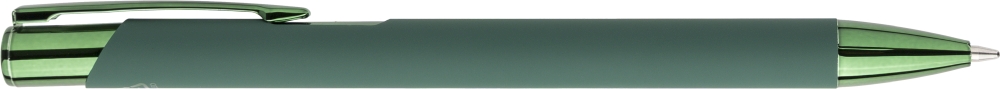 Propiska z recyklovaného hliníku s pogumovaným povrchem a sladěnými plastovými a kovovými detaily s UV vrstvou. Po gravírování se objeví lesklý zrcadlový efekt. S gravírovaným logem z recyklovaného materiálu. Modrý inkoust. Rozměry: 1 cm x 1,3 cm x 13,8 cm.