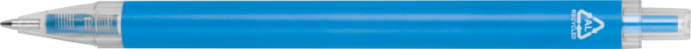 Propiska z recyklovaného hliníku a plastu s průhledným klipem a modrou inkoustovou náplní. Rozměry: o 1 x 14,2 cm