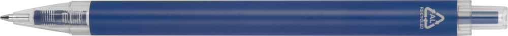 Propiska z recyklovaného hliníku a plastu s průhledným klipem a modrou inkoustovou náplní. Rozměry: o 1 x 14,2 cm