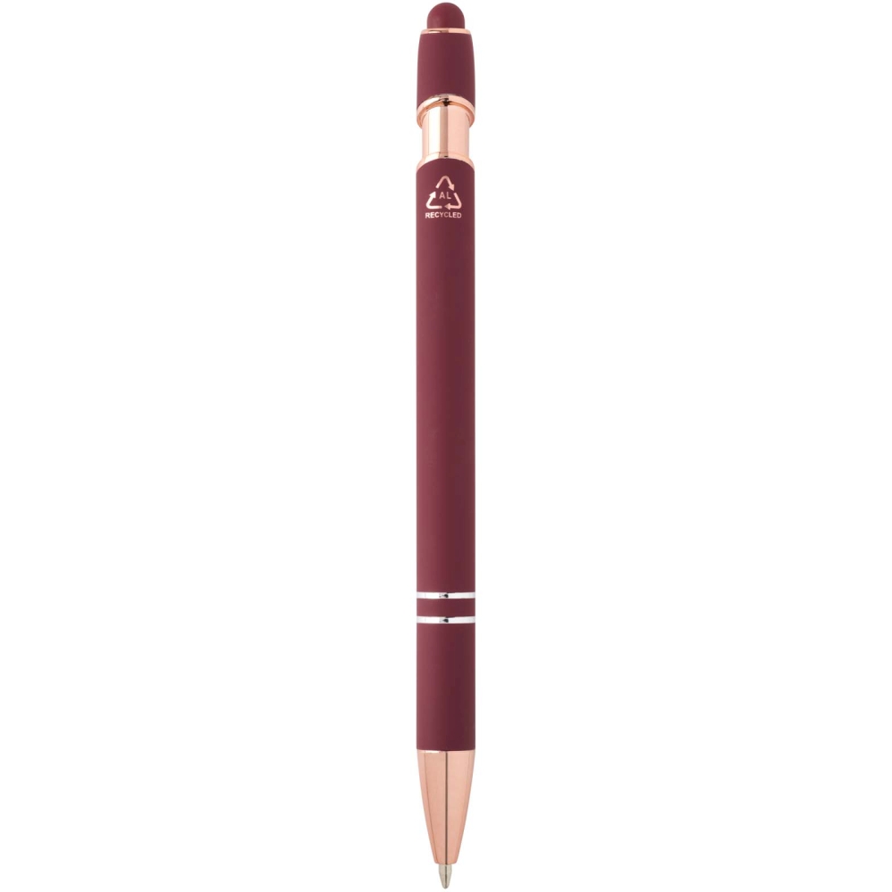 Propiskas povrchovou úpravou z růžového zlata má tělo vyrobené z recyklovaného hliníku a dotykový stylus vyrobený ze silikonu. Snižuje také množství odpadu na skládkách a pomáhá šetřit přírodní zdroje s cílem snížit emise skleníkových plynů. Barva inkoustu: Černá. Délka psaní: 800 metrů. Rozměr hrotu: 1,0 mm. Rozměry: 14,4 x O 1 cm